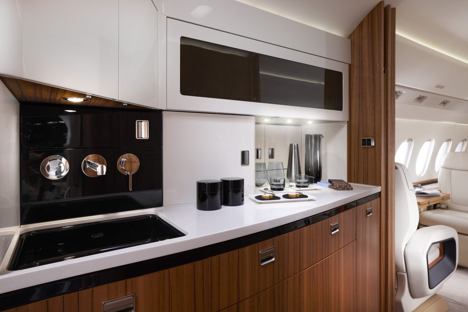 The Falcon 6X redefines comfort in its class with the tallest and widest cabin, 30 oversized windows, and the unique skylight above the galley. Its customizable three-zone interior can include a Privacy Suite for restful sleep on long legs. With transcontinental range, high-speed cruise, and strong short-field capabilities, it offers unmatched performance and accessibility. Whether for business or leisure, the Falcon 6X combines luxury, flexibility, and efficiency.